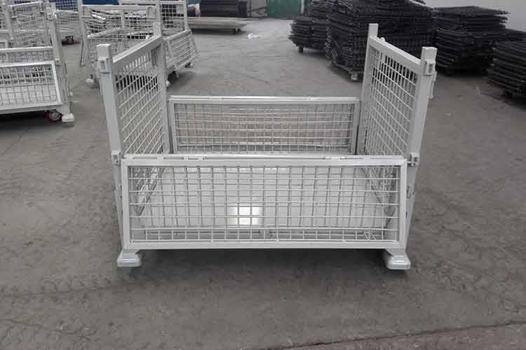 产品简介:带轮金属网箱可以堆垛,在不用时只需要折叠存放,节省仓库的存储空间。带轮金属网箱主要用于较重或大物品的存放及机械化周转搬运,特别适合汽车、家电、机械五金等行业的使用。从而配合用叉车、吊车、行车、升降机、台车、液压托盘车装卸、搬运和堆高,省时省力。带轮金属网箱产品特点:1...